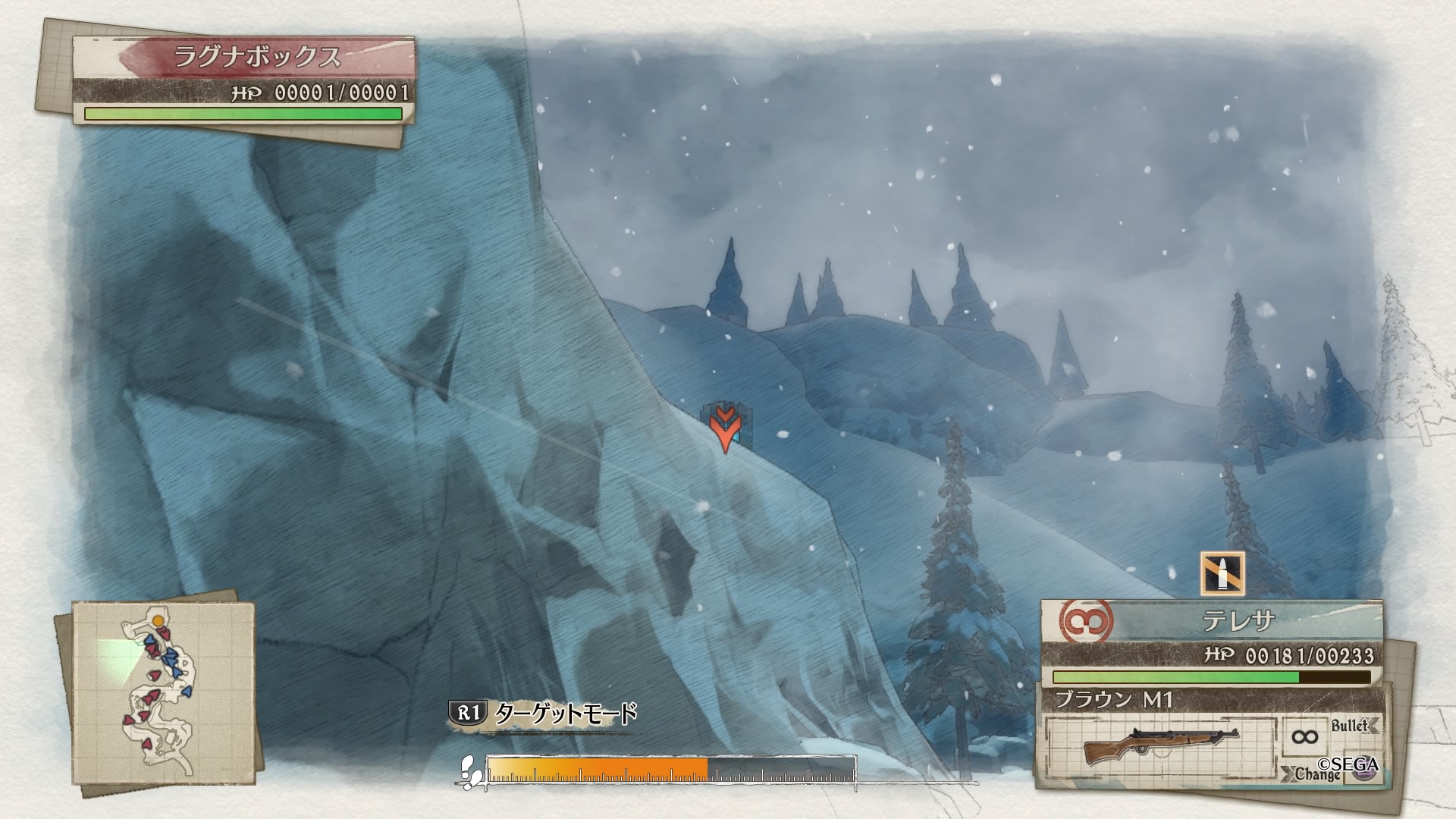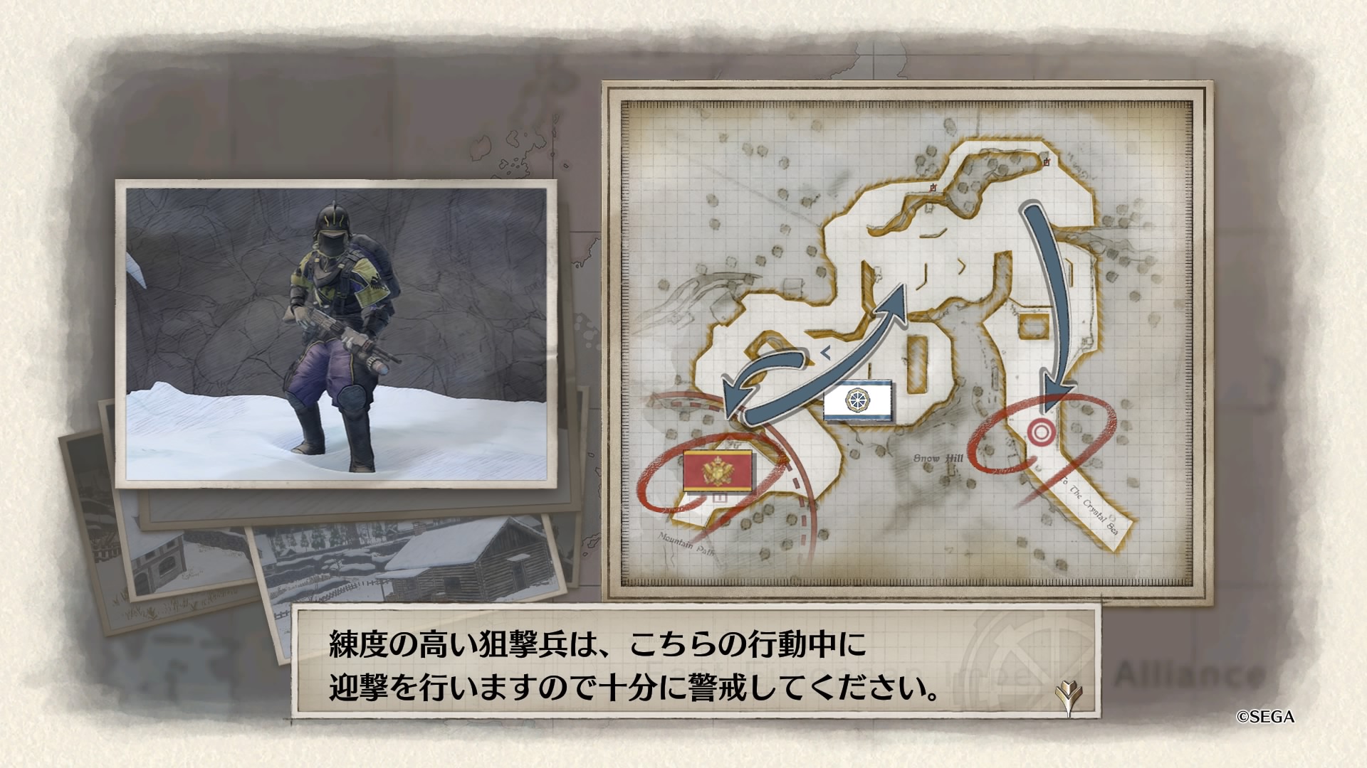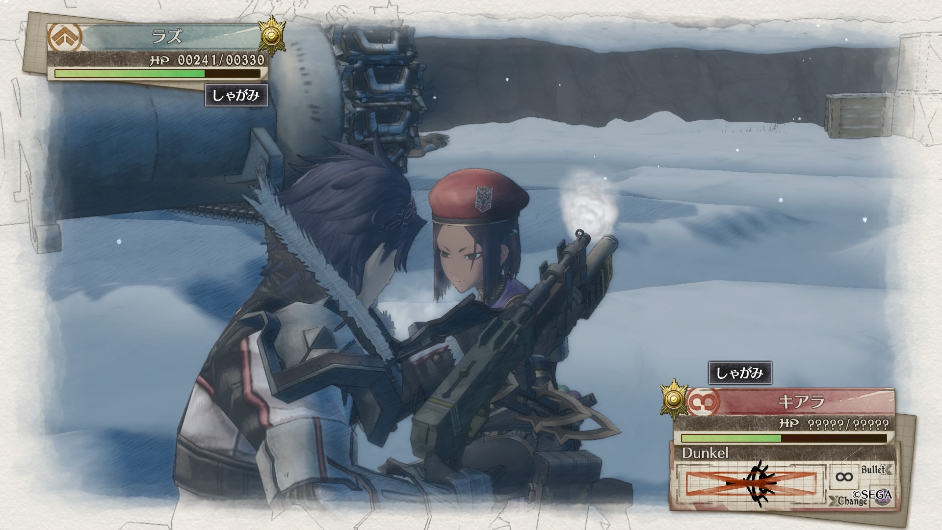 今作のタイトル画面やイメージイラストでも雪の中の戦闘がテーマとなっているようで、ここから今作の本編が開始されるといってもいいのだろう
