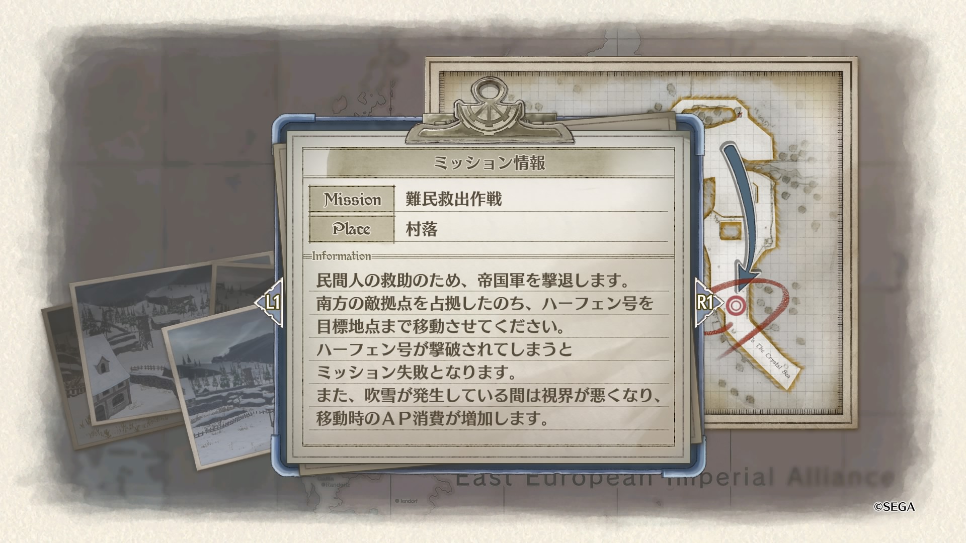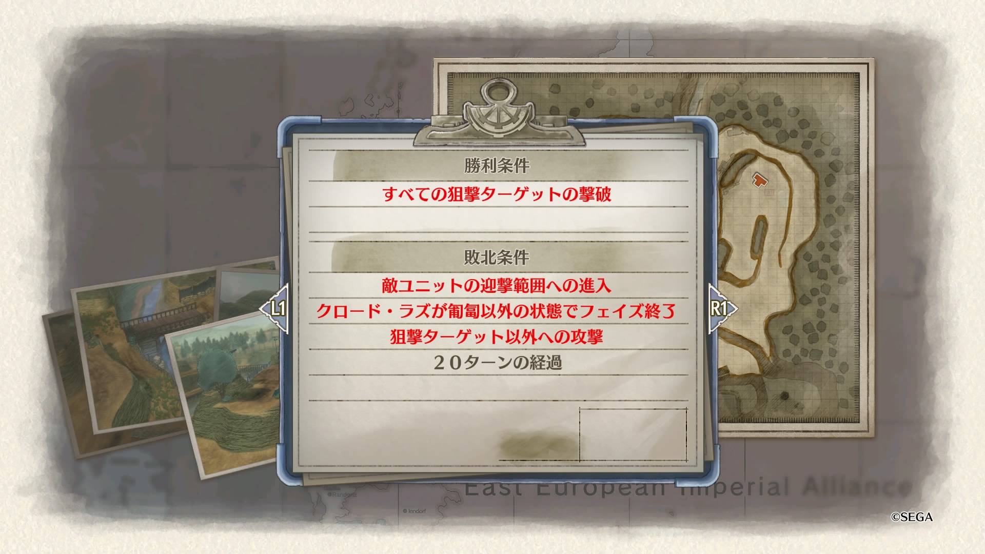 また作戦情報には記載されてないが、このミッションではリナの射撃に合わせてターゲットを攻撃するという目的があり、リナがターゲットに向かって射撃した後に、クロードかラズでそのターゲットを攻撃しなければならない