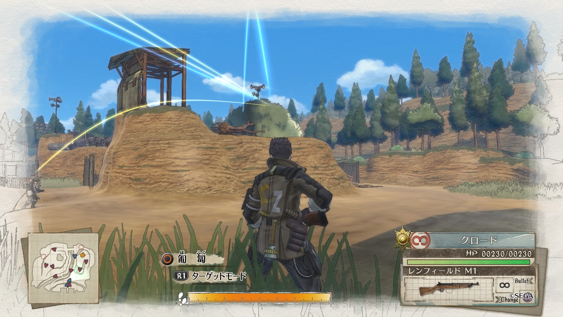 しかし、味方のうち誰かが敵を発見している状態なら、索敵ラインが表示されなくても離れた場所からの攻撃が可能になる