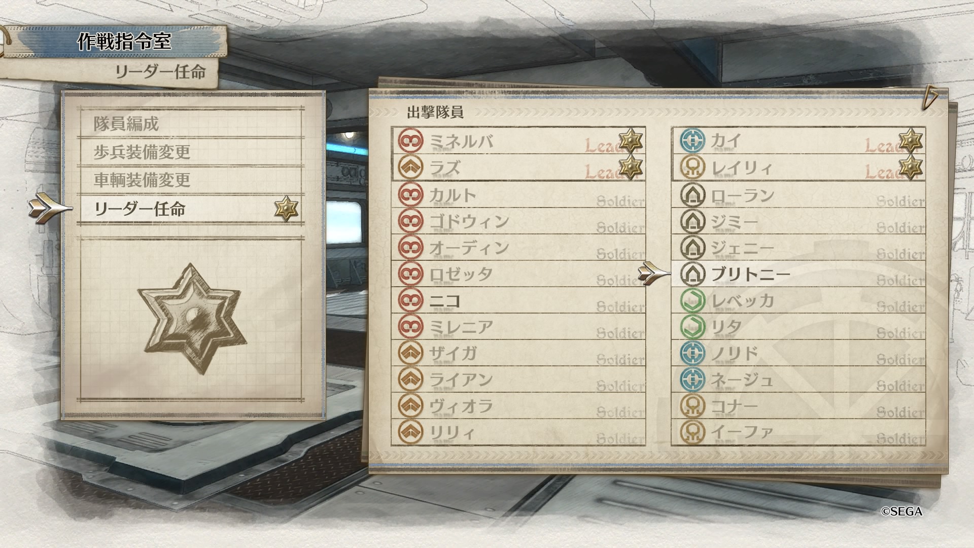 また、今後は部隊編成において新たにリーダーを一人任命できるようになりますが、偵察兵のリーダーがいなかったのでその中から任命しようとしたら、ミネルバが固定メンバーでリーダーになってました