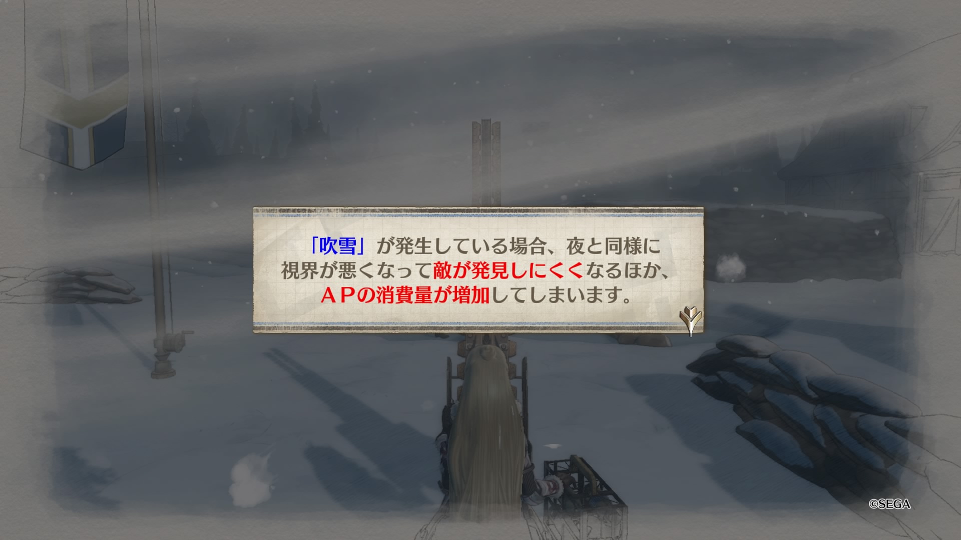 また、このマップではターン経過で吹雪が発生し、敵の発見が難しくなってしまう