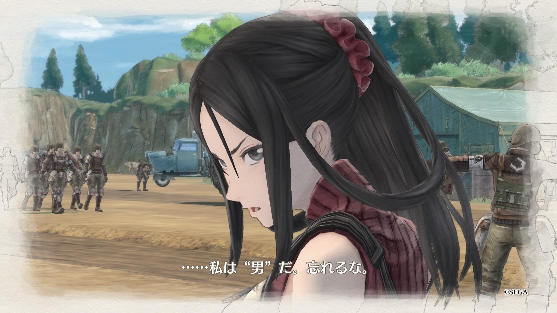 性格は男勝り、外見はスレンダーで黒髪ロング、戦場では後姿の尻が悩ましいというポイントの高い女性なのだが、本人の口から「私は男だ」という意味不明な発言が!!