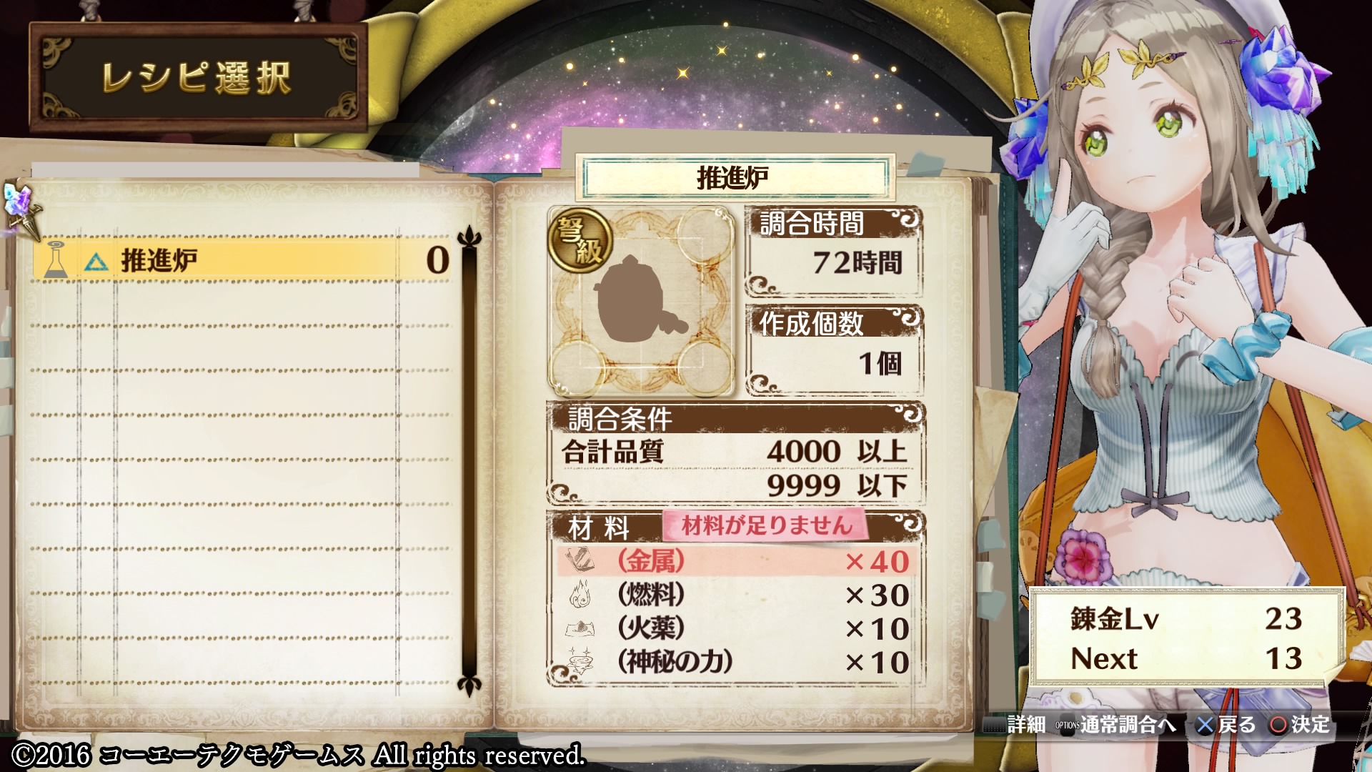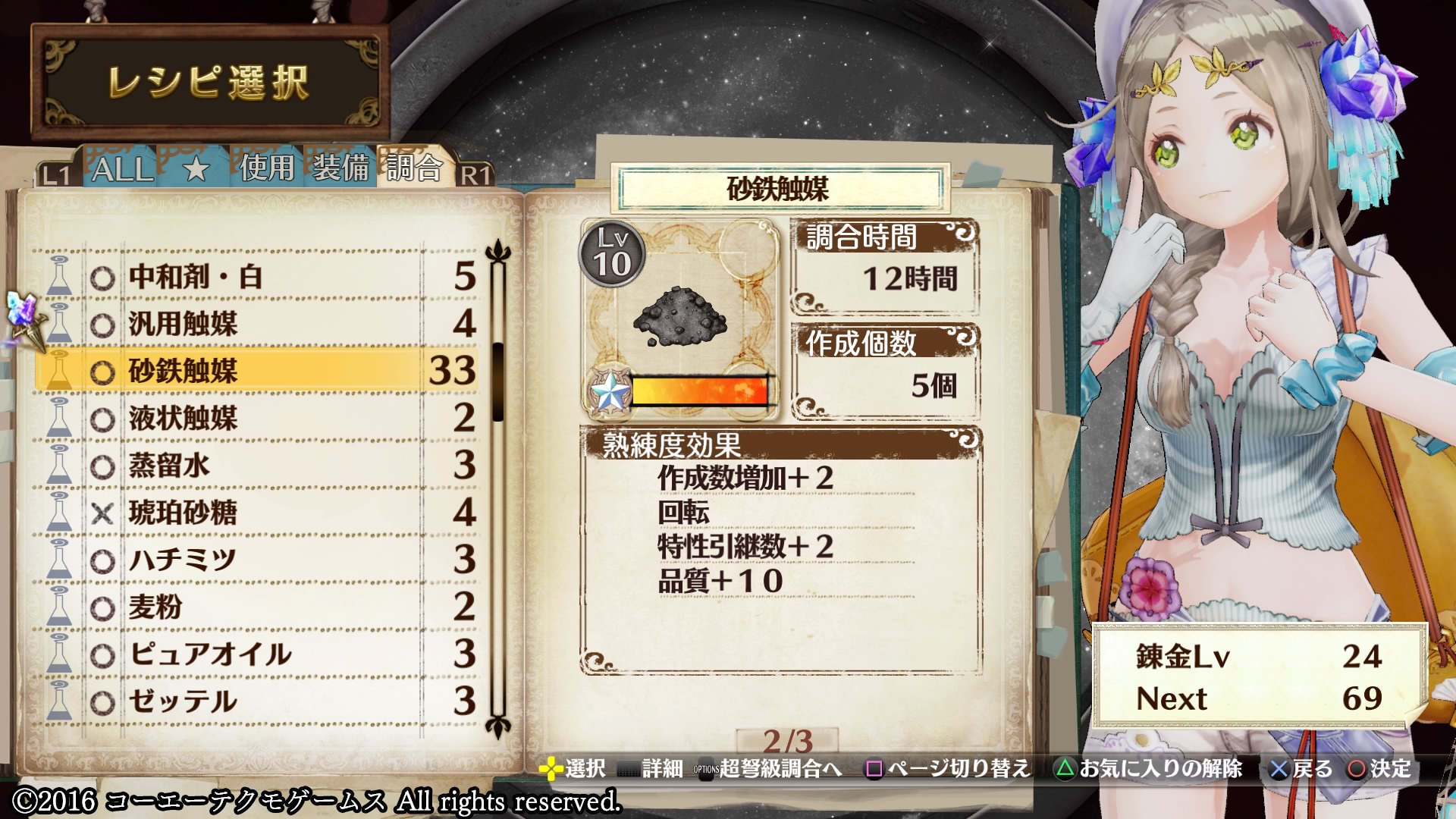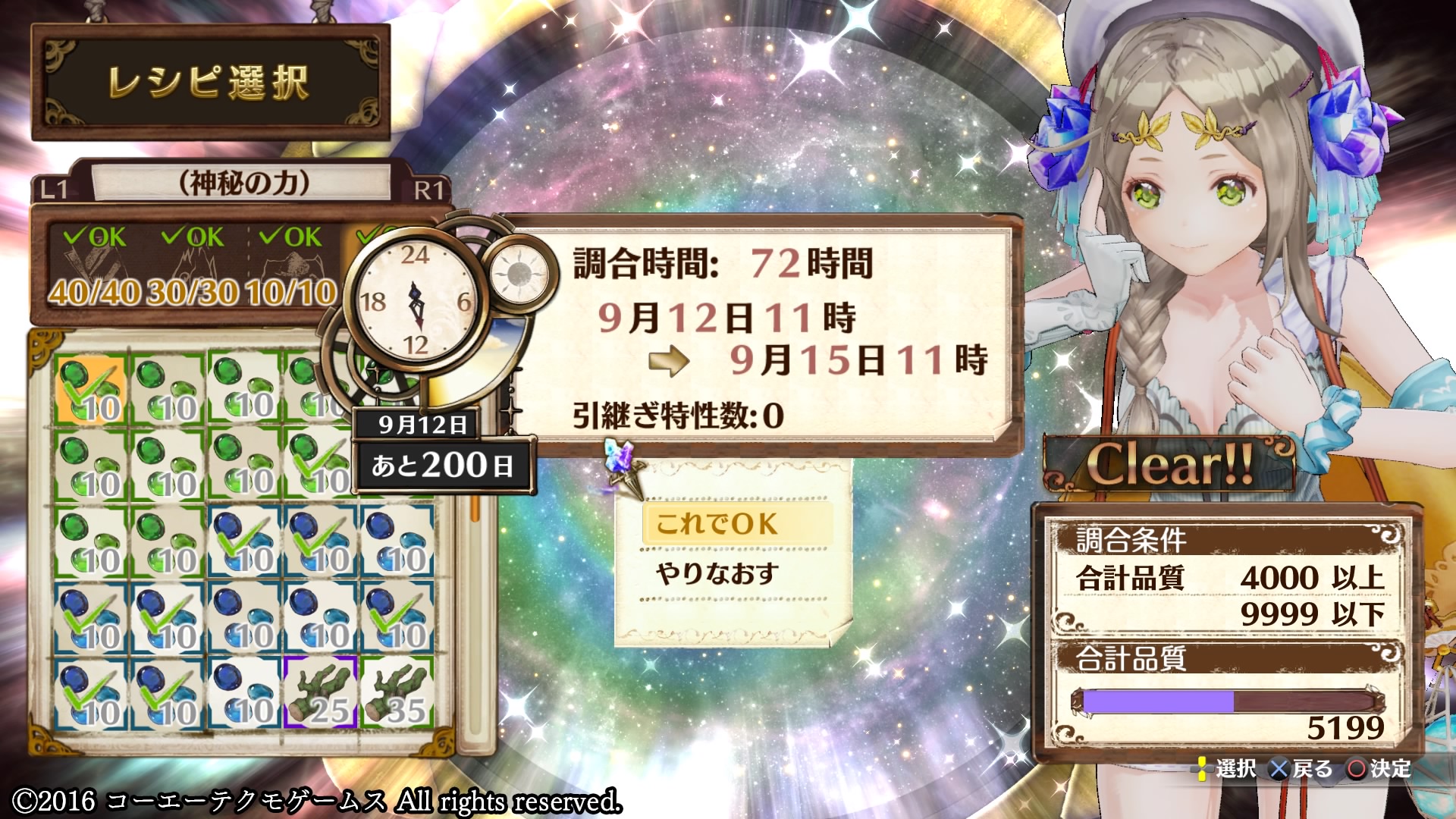 ただ、ソフィーと比べると調合にかかる時間が大幅に長くなっているため、日数の経過は今作の方が早い