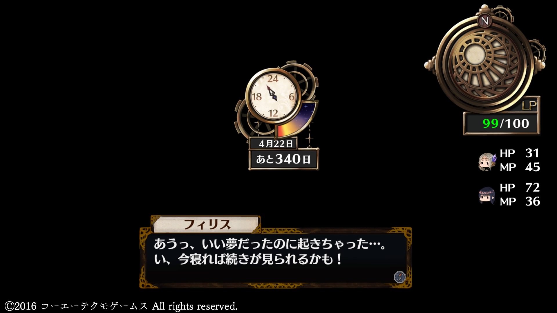 前作ではカレンダーに年は表示されなかったので、何か月で1年なのかわからなかったんですが、フィリスでは年表示されたことで現実世界と同じく12か月で1年が経過することが分かりました