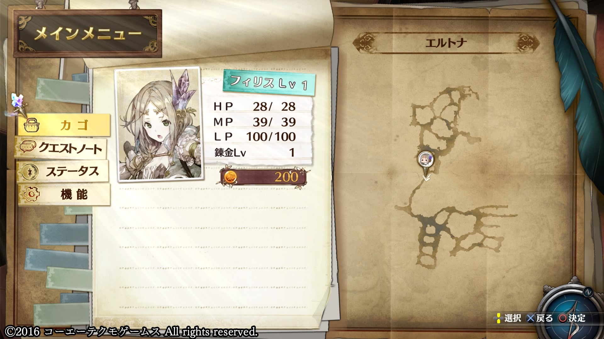 地図上にはほかにも中央付近に町が一つあるのでとりあえずはそこを目指したいところなんだけど、ここからだとまだそれなりに距離があるようで、当分はアトリエでの寝泊まりが続く模様