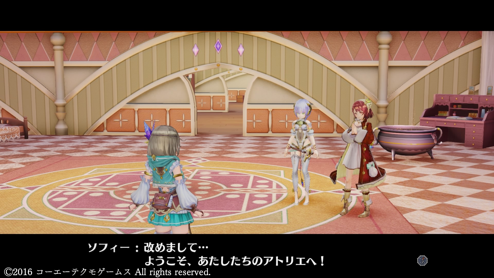 長老から町の外へ出るための課題が出されたタイミングで、アトリエ内のBGMがソフィーのアトリエのものに変化します