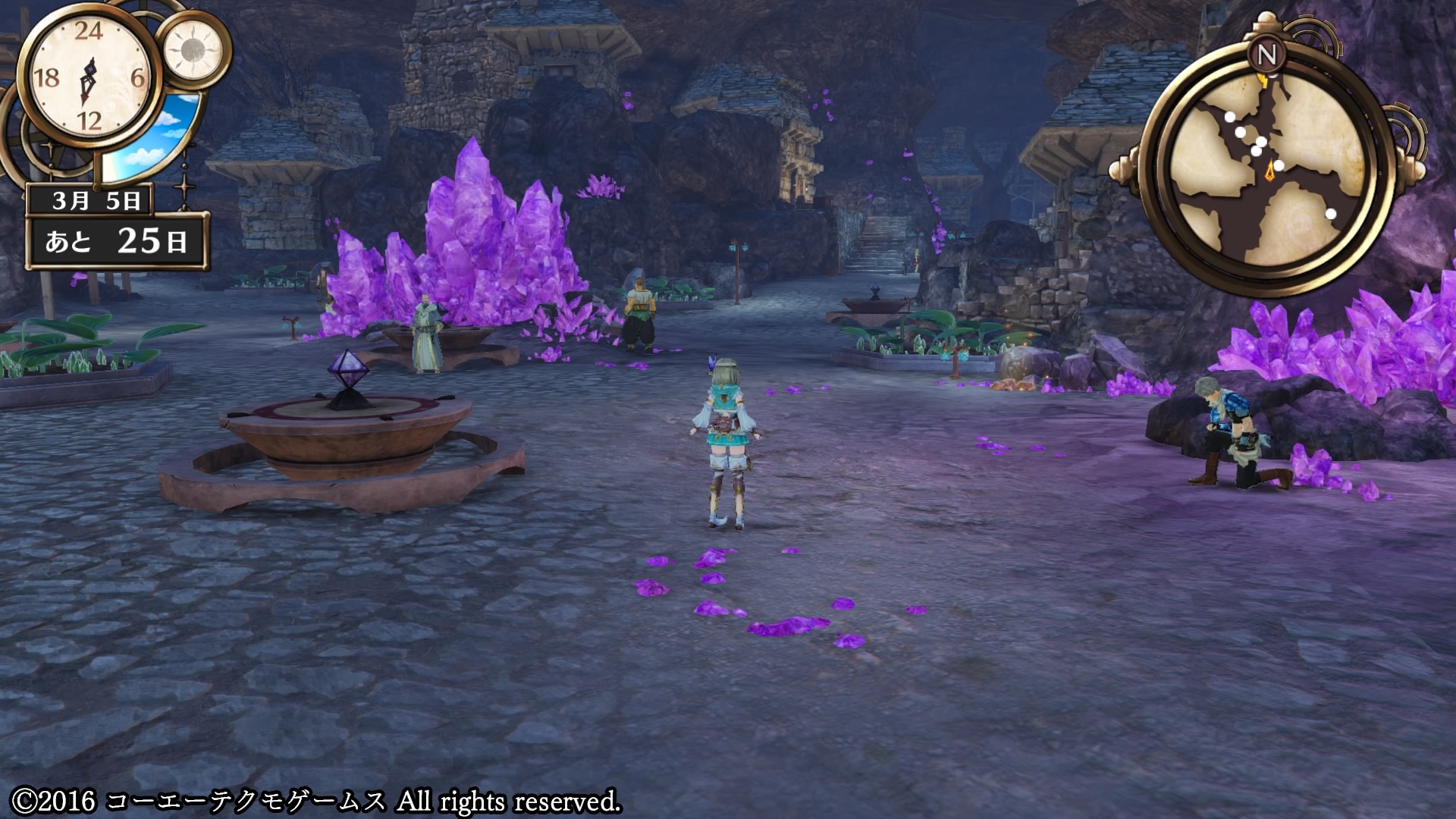 アーランドシリーズや黄昏シリーズは町中で何をしても時間は経過せず、前作ソフィーはエリアを移動するときに時間が経過するだけでリアルタイムではなかったんですが、今作かなりシビアじゃないですか?