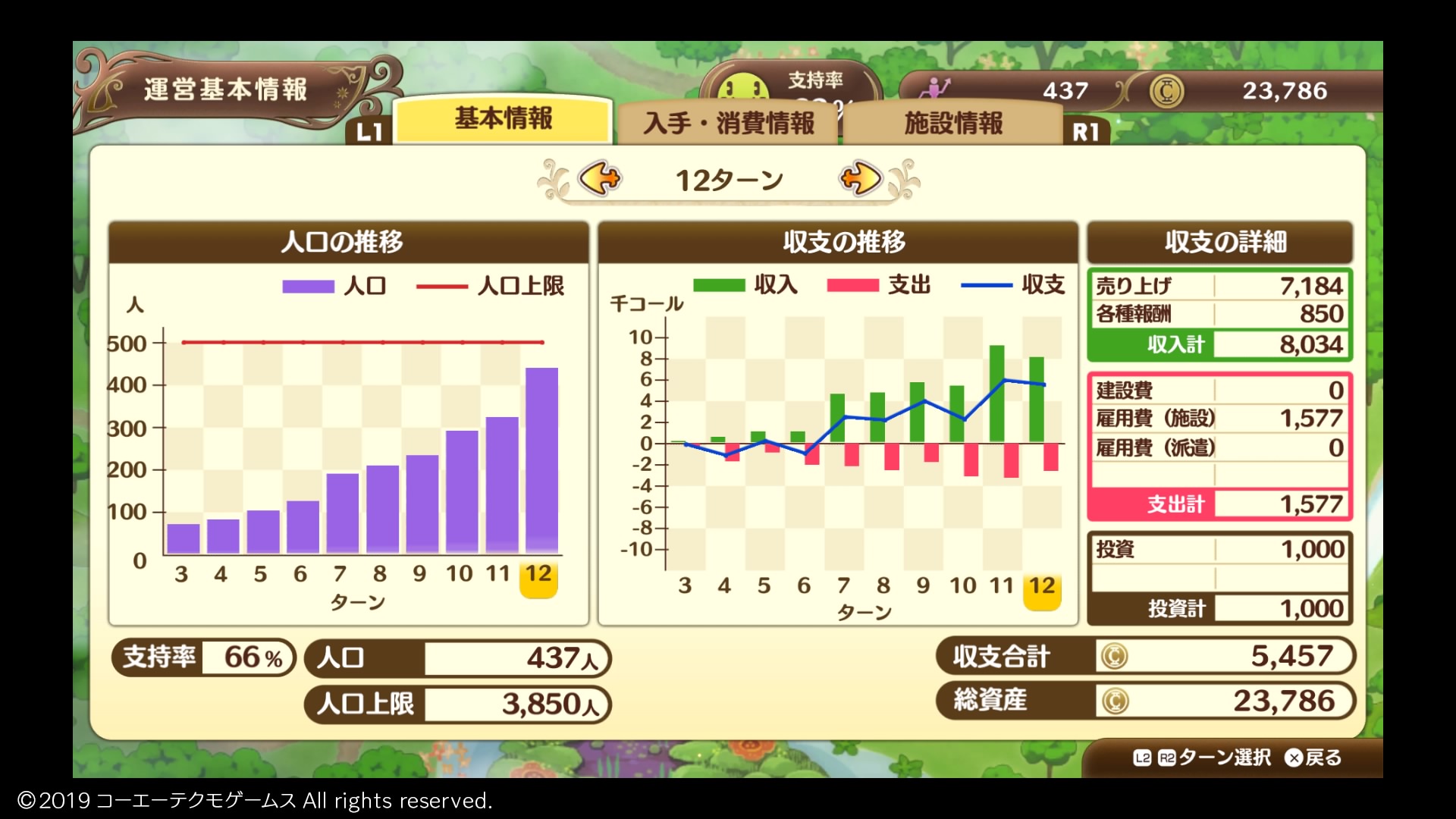 1周目の序盤はもっと資金のやりくりに頭を悩ませたはずなんですが、具体的にどれくらいの倍率で収入が増えているのかはわかりません