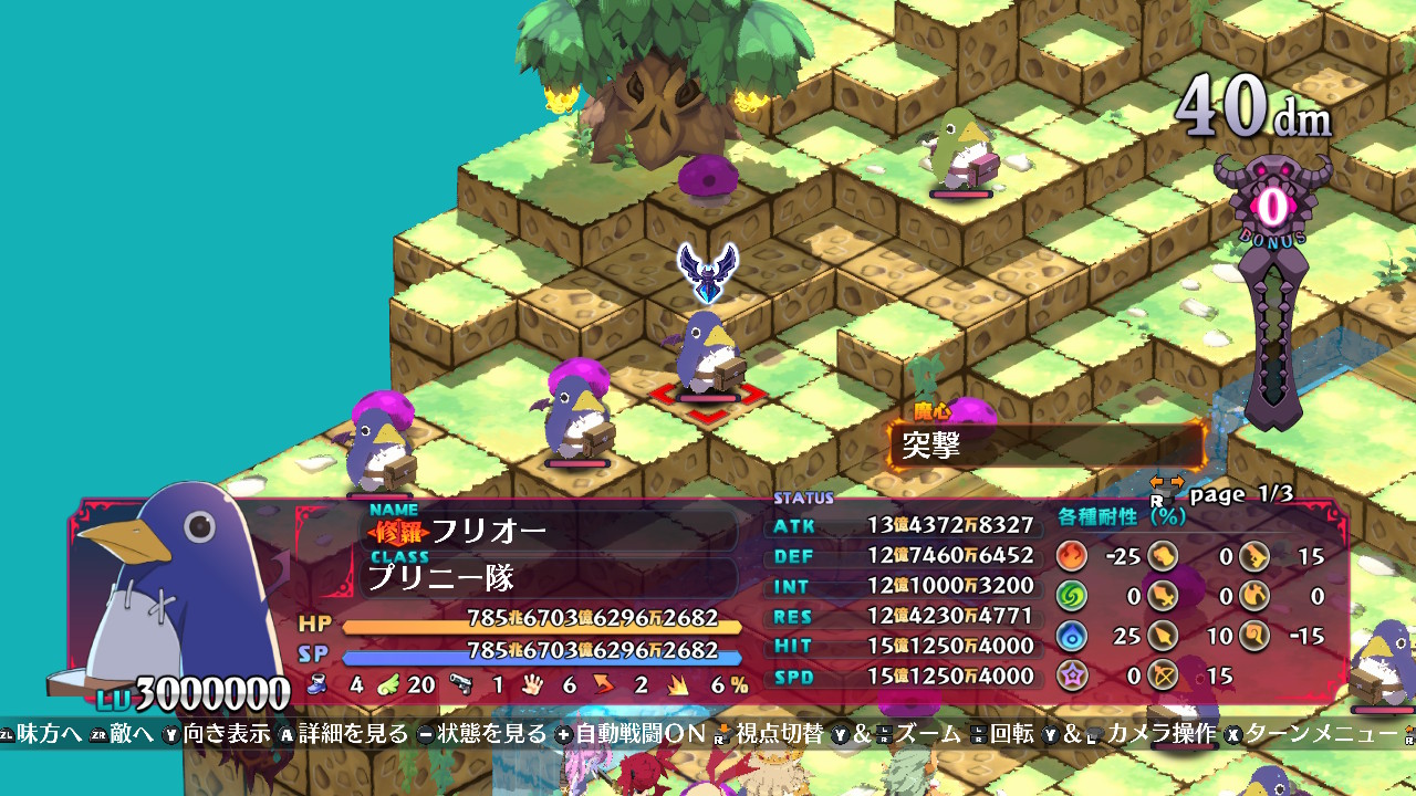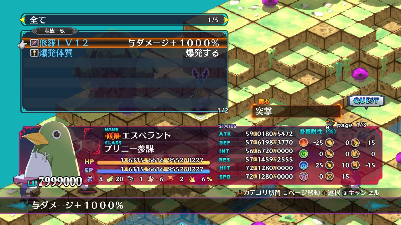 計算すると現世の時点で約16,000LVと、他のプリニーよりも10,000LV高くなっているが、現世ではLV上限で9,999LVとなっていたようだ