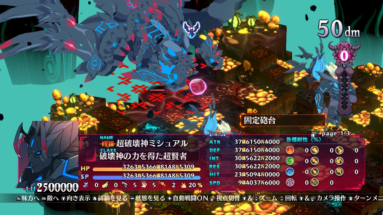 最後のミシュアルは1周目と同様、これまで経験値稼ぎで狩っていた破壊神とは文字通りHPが桁違いで正直勝てないかもと思いましたが、LV200万のゼットでも500兆くらいのダメージ出たのでLV上げのために出直すことなくクリアできました