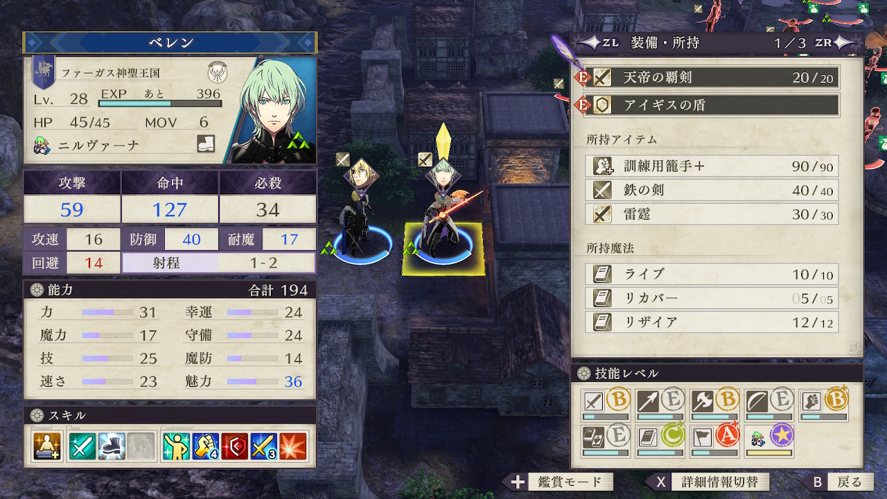 主人公はフォートレスで運用していたため守備が伸び、アイギスの盾とダスカー重装隊(?)を合わせるとニルヴァーナの状態でも守備40を確保