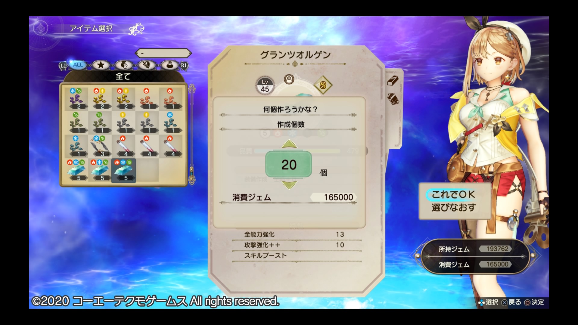 まるでクリア後のやり込みの末に作り上げたかのような強さですが、本編中にここまでステータスがインフレするのは他のアトリエ作品では普通ありえないのでは?