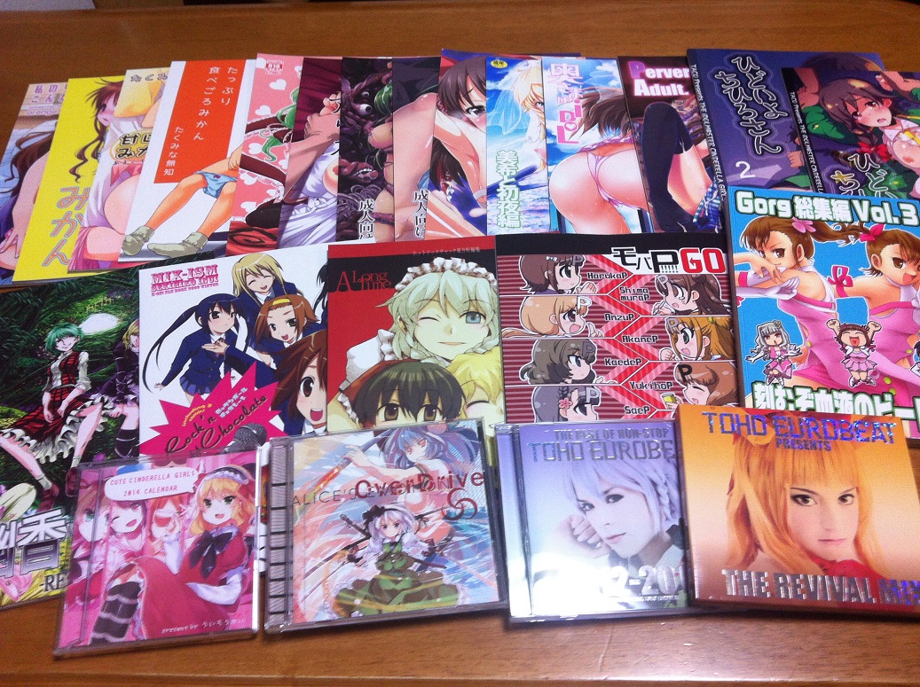 アイマスライブ目的出来たので、やっぱりアイマス関係の同人誌を調達したいなあと思ったんですが、今回は訪れた店舗が少なかったため、アイマスの同人誌は買わずに結局東方関係の同人誌ばっかり買ってしまいましたw