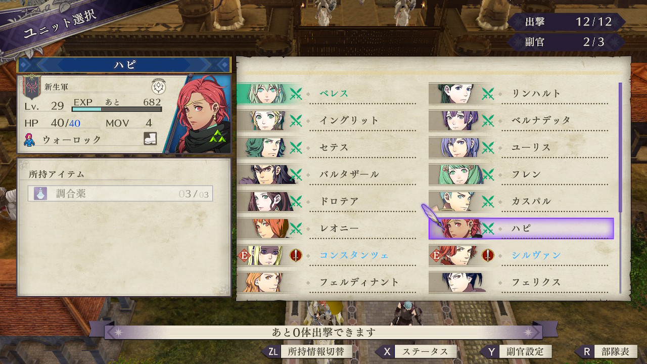 最終マップでは自軍の出撃枠が12枠に対し、今回2軍を含めて戦力となるユニットが11人しかおらず、1枠余らせてしまうことに