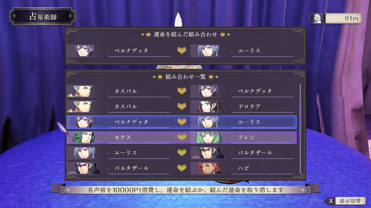で、ここで一つ失敗したのが、せっかく占星術師に結んでもらった運命を主人公の支援Sでぶった切ってしまったこと!