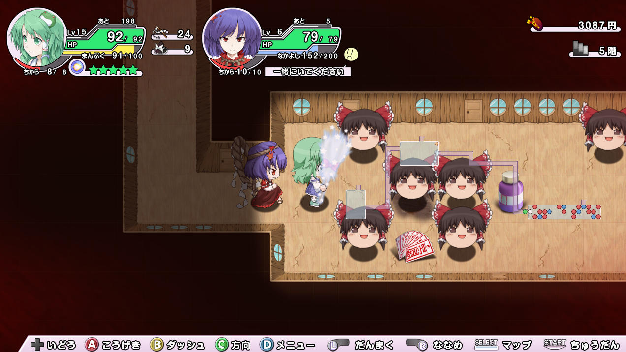 今回は回復用の心のスキマに、身代わり人形、さらには加速薬に怪力薬と、攻撃力を増加させる薬も用意