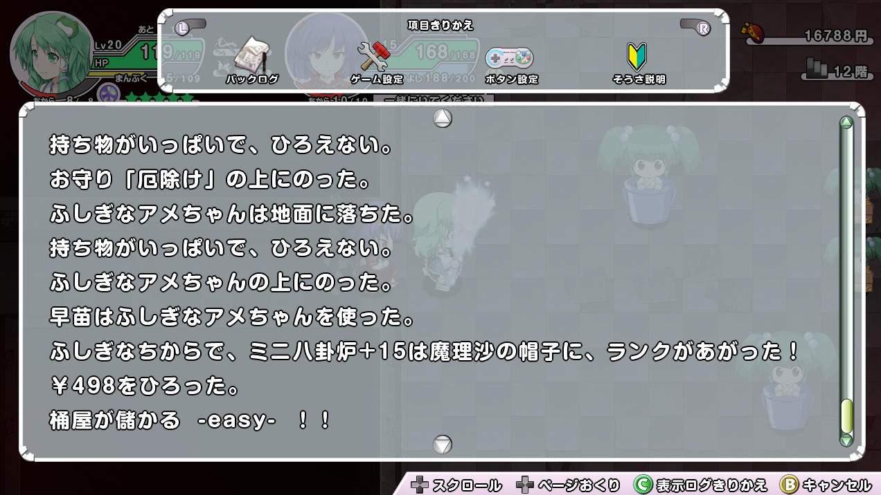 持ち物を失ったあと、賽銭箱と倉庫には十分なお金とアイテムがあったので、香霖堂に置かれているアイテムを買い戻す