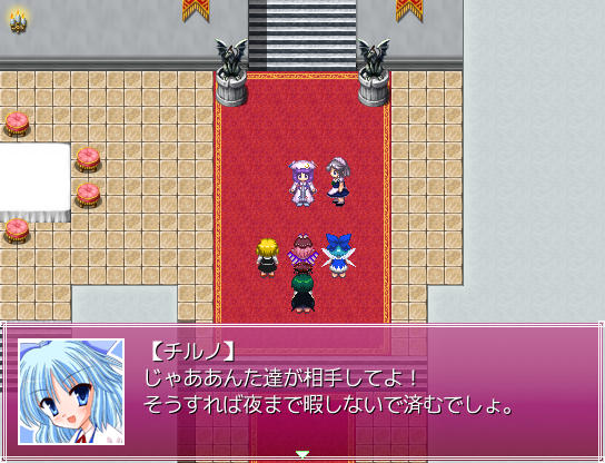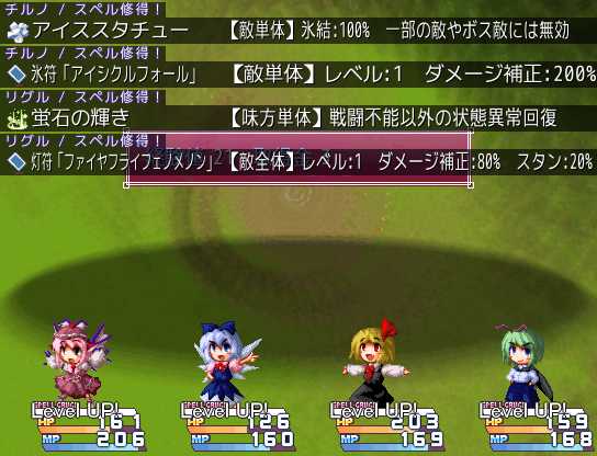 メインは東方キャラとのボス戦なんだけど、LV上げしないと勝てない難易度ではなく、どのボスと戦っても強さにさほど差はない