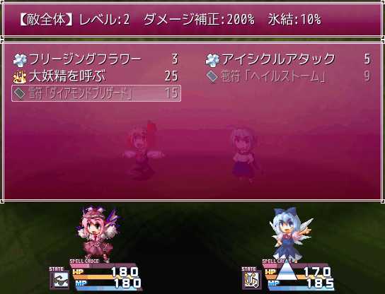 私が今作ってる作品のボス戦は1,2ターン攻撃すればボスのHPが0になって次の段階へ移行するようなバランスにしてますが、これは原作STGのスペルカード戦みたいなテンポの良さを表現するためなんですよ