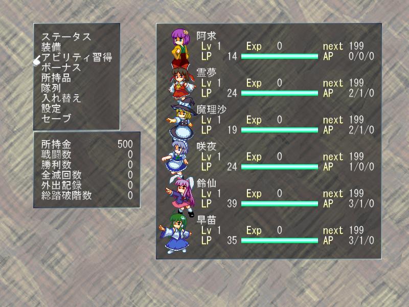 内容は阿求が主人公で、東方キャラを自由に選んでパーティを組み、ダンジョンを探索するというものです