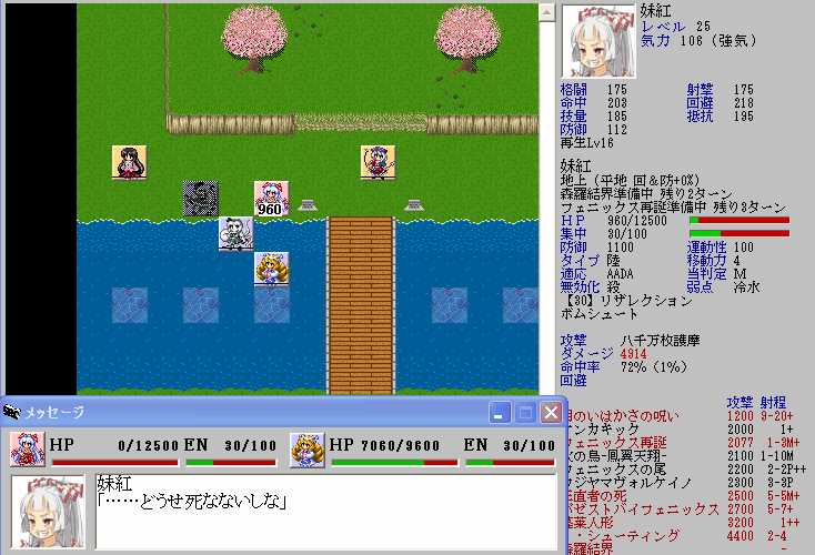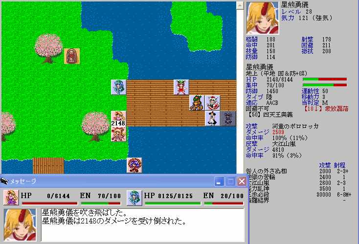 さらにマップ左下からは妖怪の山のふもとの神様3人が味方として登場するが、その次のターンには敵の主力全てが3人を狙って攻撃してくるので、助けを求める声もむなしく滅殺されるのがオチ