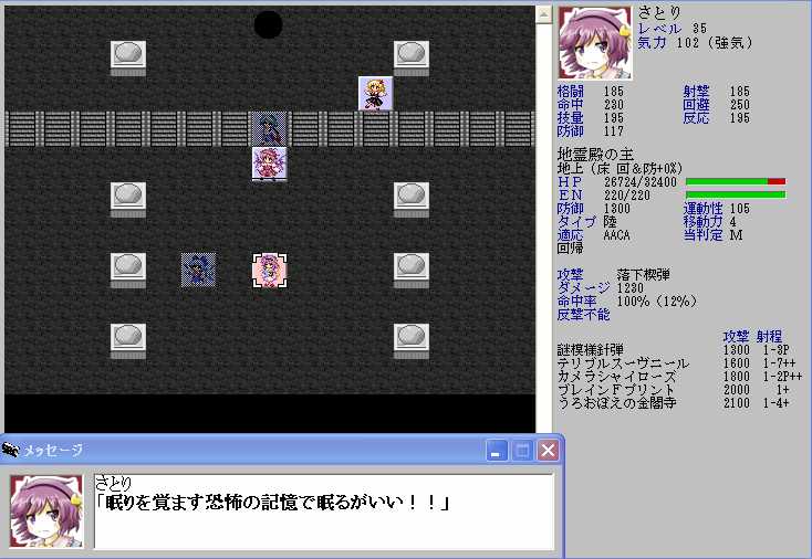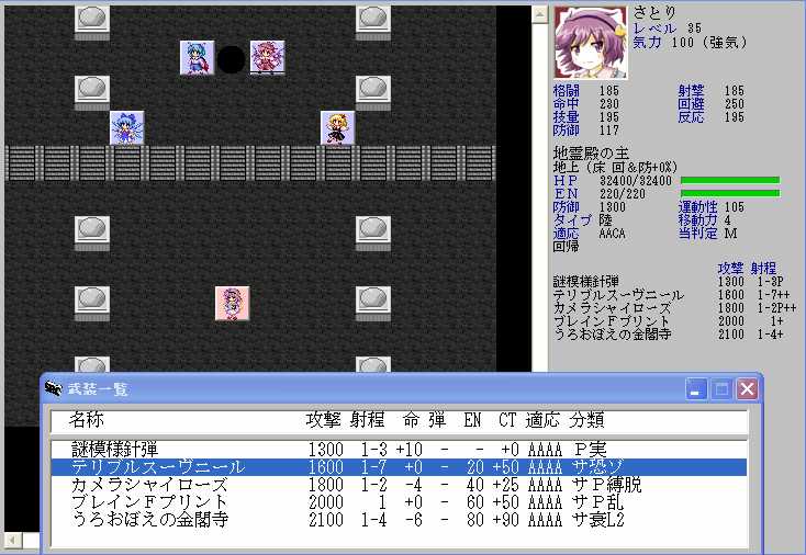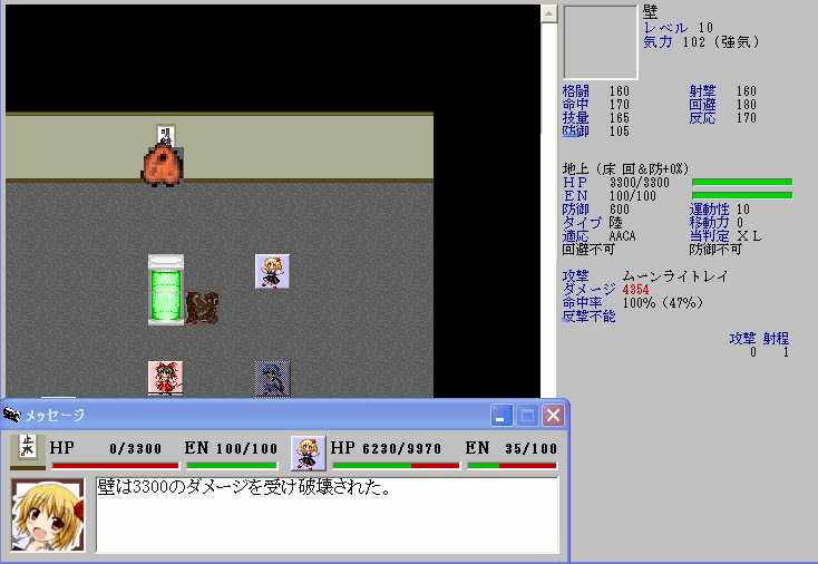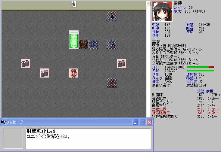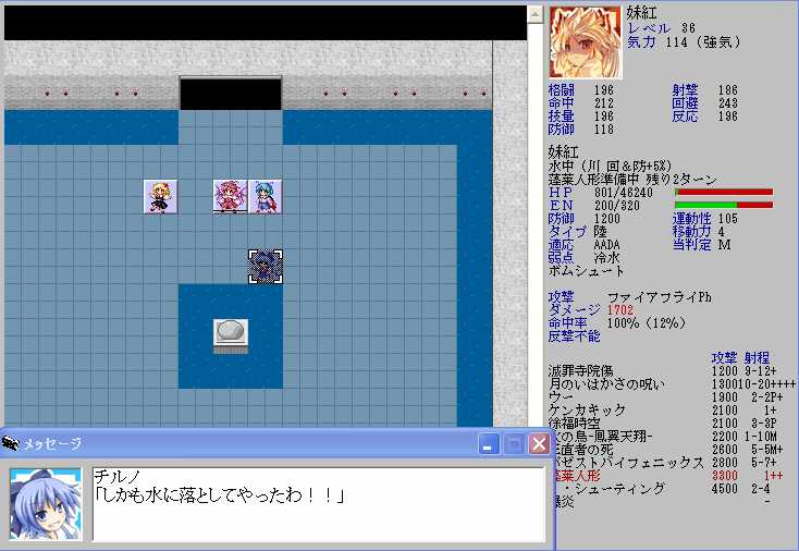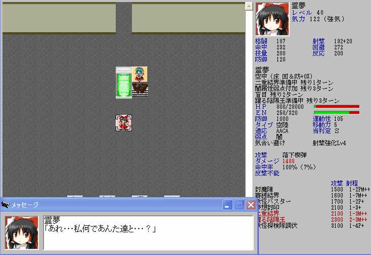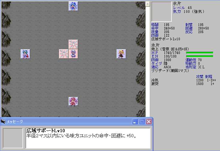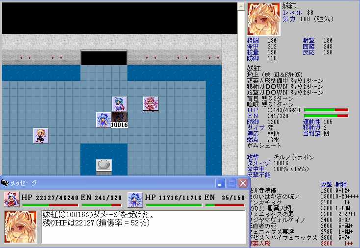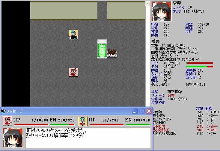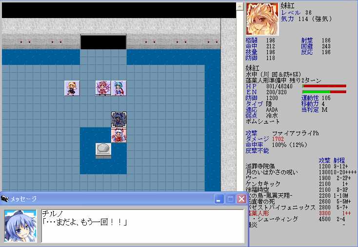 ただ、レティのHPが半分以下になると強力なZOCが発生してこちらの移動が極端に制限されてしまうので、バカルテットリンクを放つときの位置取りが難しくなる