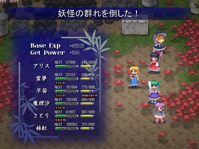 最初戦った時は強打が入るはずの草薙の剣でも0ダメージだったのでどうしたもんかと思いましたが、攻略情報の通り霊夢で光のランドパワー上げた後リトス、白蓮、パチュリーの光魔法のスペカ連発してたら倒せました