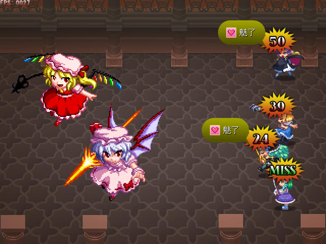 両者とも1ターンに1回行動で、スペルカードを放つ前に予備動作があるので攻撃はそれほど激しくありません