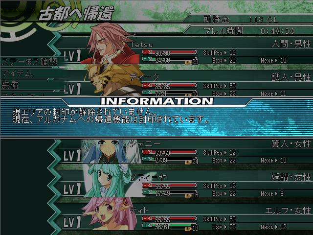 大森林のフロア3はループするのでそのままでは進めず、古都に戻って情報を集めることになる