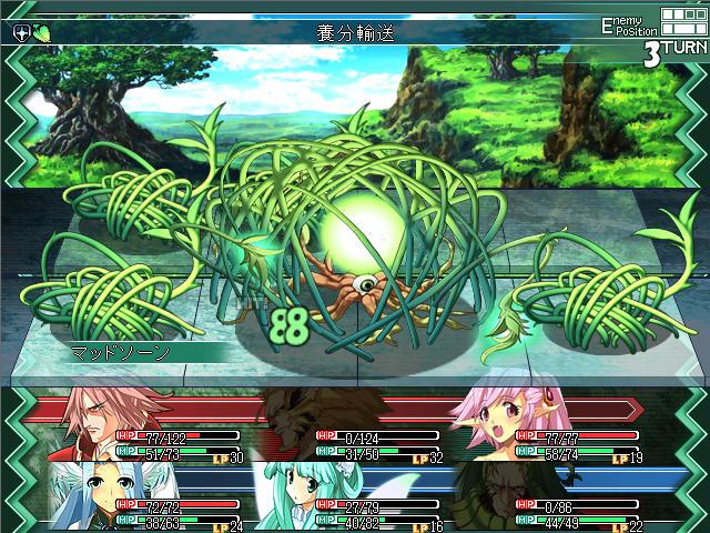 通常敵が攻撃する時にはアニメーションは表示されないのだが、これは毎ターンバトルイベントを実行し、アニメーションを表示した後戦闘行動の強制を実行することで表現されている