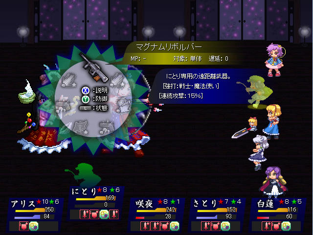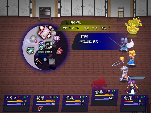 敵は永琳が攻撃、輝夜が補助と役割がはっきりしていた分火力はそれほどでもないのでこちらはあまり回復を気にする必要がない