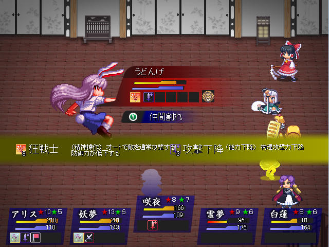 狂戦士になっている間は通常攻撃しかしてこないので、うどんげの攻撃能力をほぼ封じる事が出来る