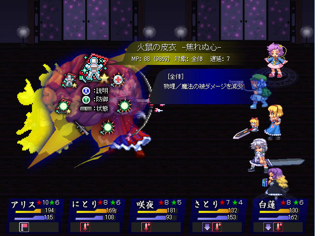 こちらも回復できなくなるが、アリスのシールドを毎ターン使えばほぼダメージは受けなくなるので、フィールドの効果がなくなる前に輝夜を撃破