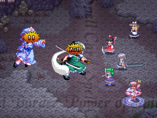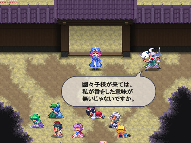 やっぱ弱点は光属性なんだろうと思ってパチュリーのロイヤルフレアをお見舞いしてやるが、妖夢は特に大ダメージと言えるほど食らわなかったし、幽々子にいたってはほぼノーダメージじゃないか!
