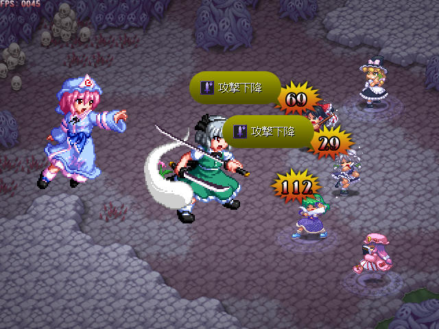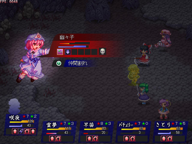 幽々子には毒と全能力低下が入ったので、咲夜で一気に攻撃して最後は毒のダメージで幽々子を撃破!