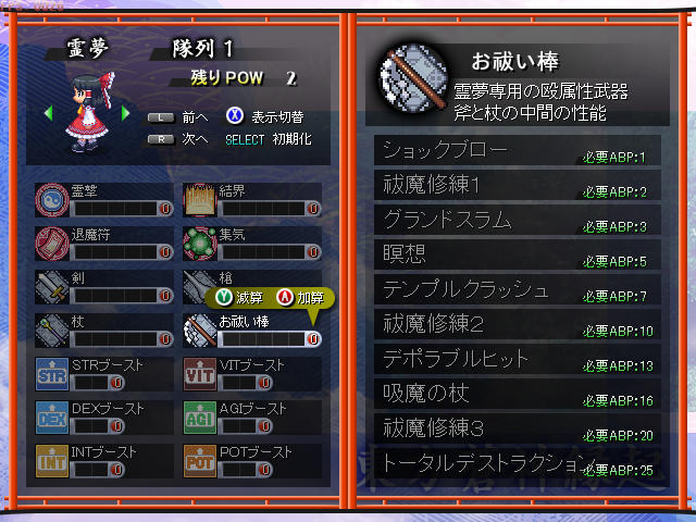 というわけで結論として、東方の迷宮はしばらくの間お休みにして、これからは東方蒼神縁起をプレイすることにしました