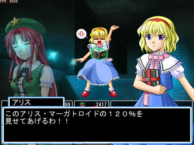 アリスをこの状態にさせないためには人形を生かしたままサモン・ドールを使わせないようにすればいいのだが、アリスのHPが4割以下になったあたりで人形を1体でも倒してしまうと、それまでのサモン・ドールの使用回数に関わらず暴走状態になってしまうので、終盤は出来るだけアリスにのみ攻撃を当てるようにする