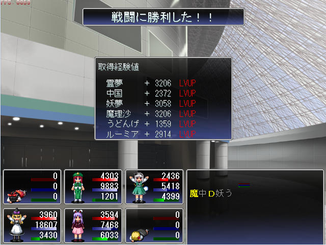 続いて前2人の攻撃に耐えつつ物理攻撃でメルランを撃破
