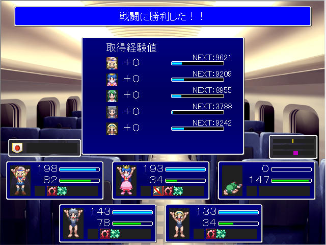 唯一銃だけがまともなダメージを与えられるので、瀕死のミサイル研に攻撃が来ないよう祈りながら戦うが、セイバーは後列への攻撃手段を持たないので、前列が壁となってミサイル研で攻撃を重ねることで撃破出来た。