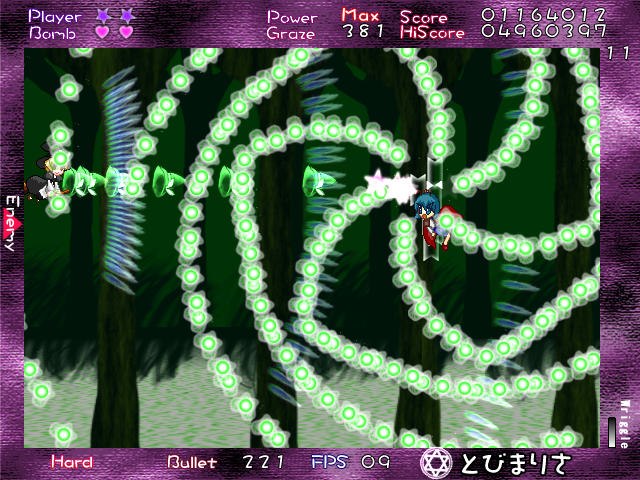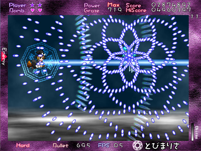 さて、どんな弾幕が見られるのか。ノーマルの弾幕と比べてみよう。