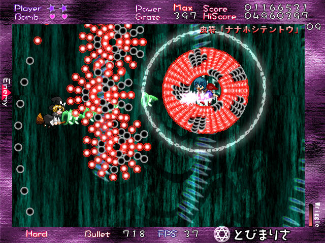 ハードではリグルを中心とした弾幕だけでなく、3匹のテントウムシが追加された