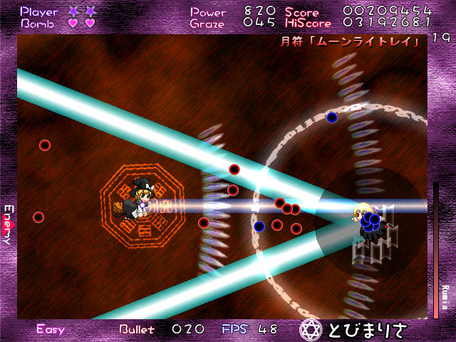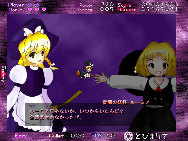 最初は当然イージーからやったんだけど、その難易度は原作の東方よりも格段に低い。写真じゃわかりにくいと思うけど、口で言うよりはましだと思うので、とりあえず見てみてよ