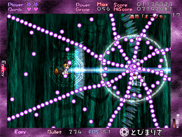 ラストスペルの蟲符「オニグモ」でようやく東方らしい弾幕が見れた
