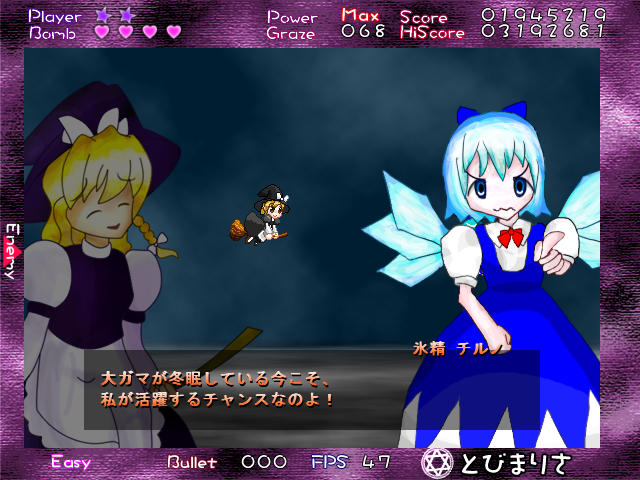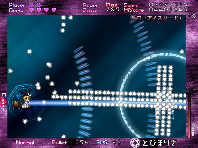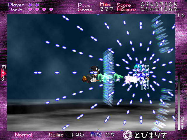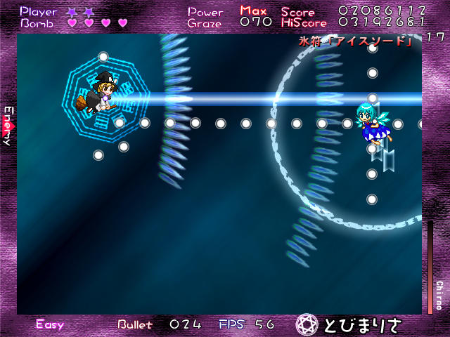 まあチルノなりに頑張ってるんだろうけど、これ原作の3ボスと比べればまだまだイージー程度だ