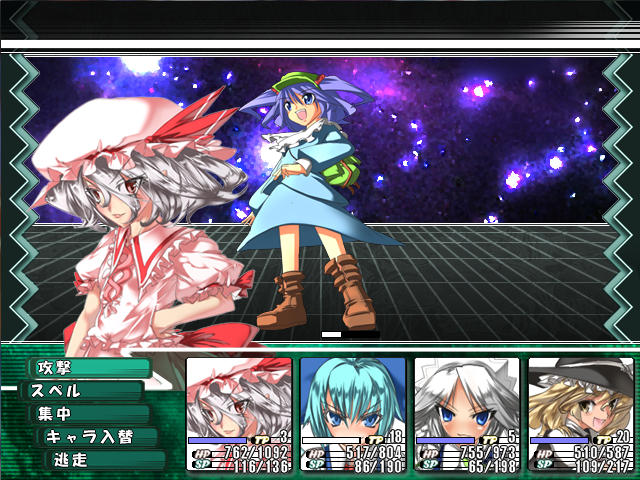 熱に強い勇儀や魔法防御の高いパチュリーなら大丈夫だと思って前衛に配置してみたんだけど二人とも一撃でやられてしまった!勇儀は魔法防御が足りず、パチュリーはHPが低すぎたのである。どうやら下手に対策しても無駄のようで、HPの高いキャラで耐えなくてはならないらしい。