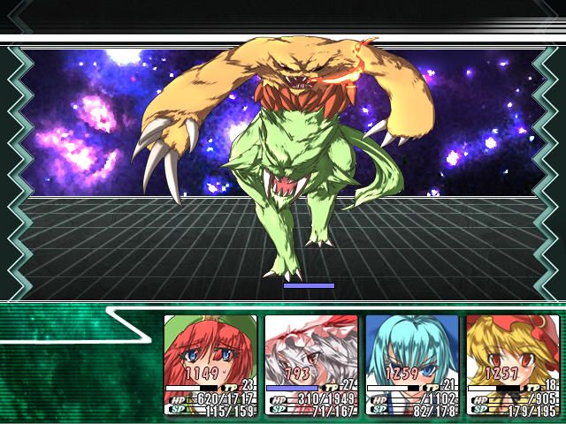 全体攻撃以外は普通の単体攻撃だから全然平気なんだけど数ターンおきに業火炎流を使ってくるのが脅威。これに耐えられるキャラは限られており、しかもHPが満タンでないとほとんどのキャラが危うい。一撃死の可能性とかもう放っといて後衛のキャラも攻撃に参加させるが、そのたびに業火炎流で一掃されてしまう。