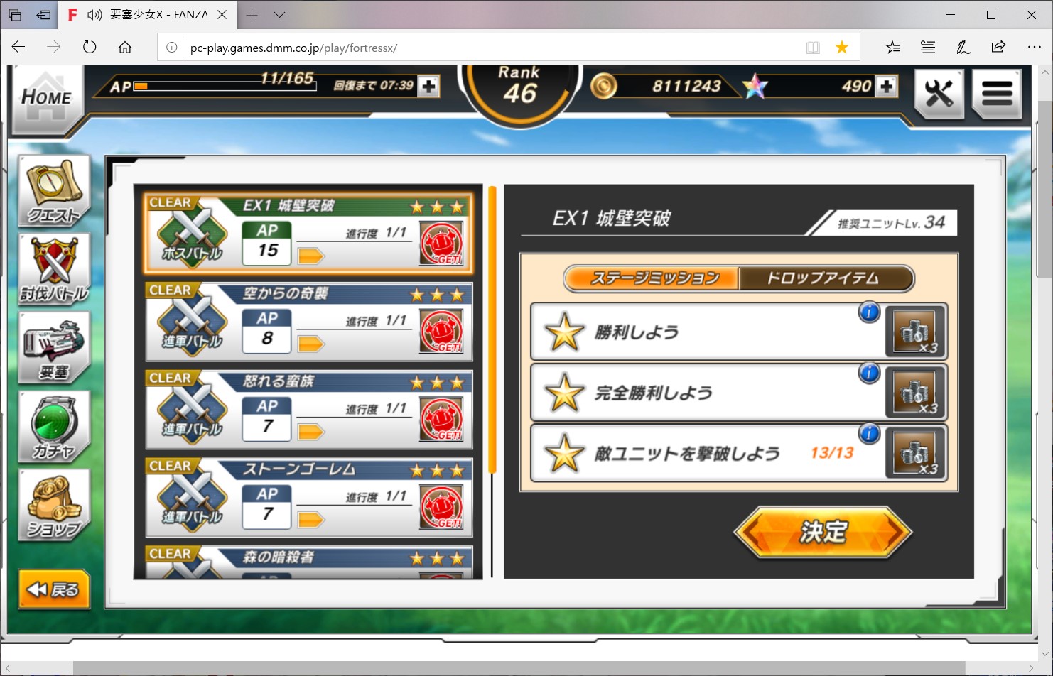 ここまで来るとAPが全回復するのに7時間21分かかるので、夜は7時間たっぷり睡眠してもAPが溢れる心配はないですね(完全にソシャゲ脳)