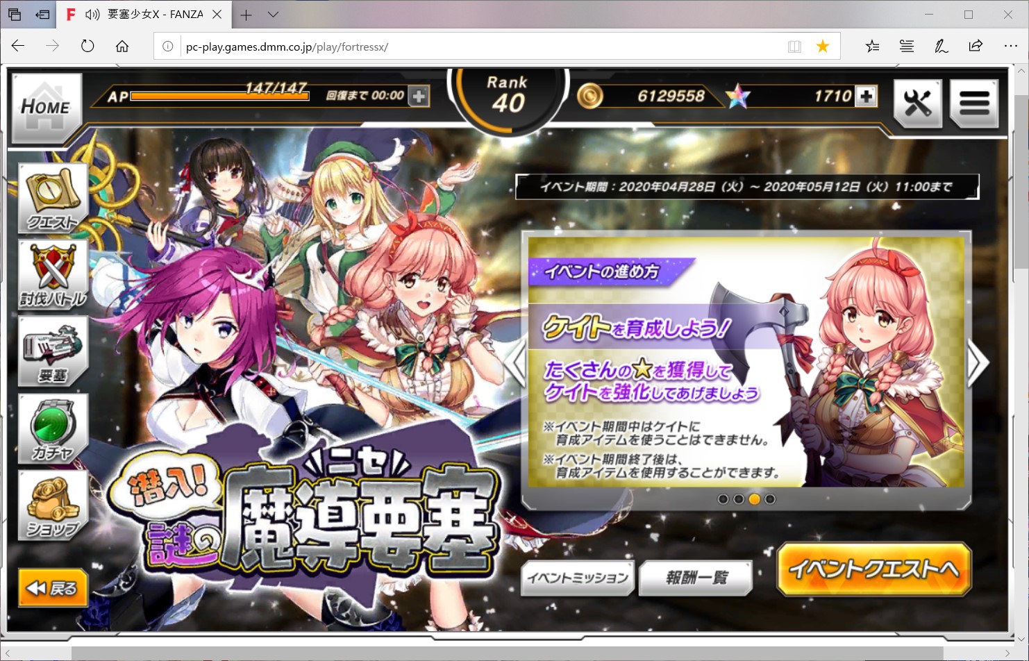 イベントクエストは通常クエストと異なり委任ができず、1回ずつプレイしなければならないが、これを委任するだけで終わったらイベントやる意味ないからなあw