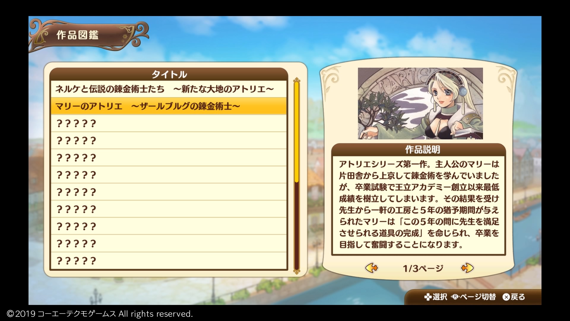 最初は今作オリジナルのBGMが再生されているのかと思って聴いてたんですが、ユーディー以降のグラムナートシリーズの錬金術士を選ぶとBGMが変化して、それで原作シリーズごとにBGMが設定されていることに気づきました
