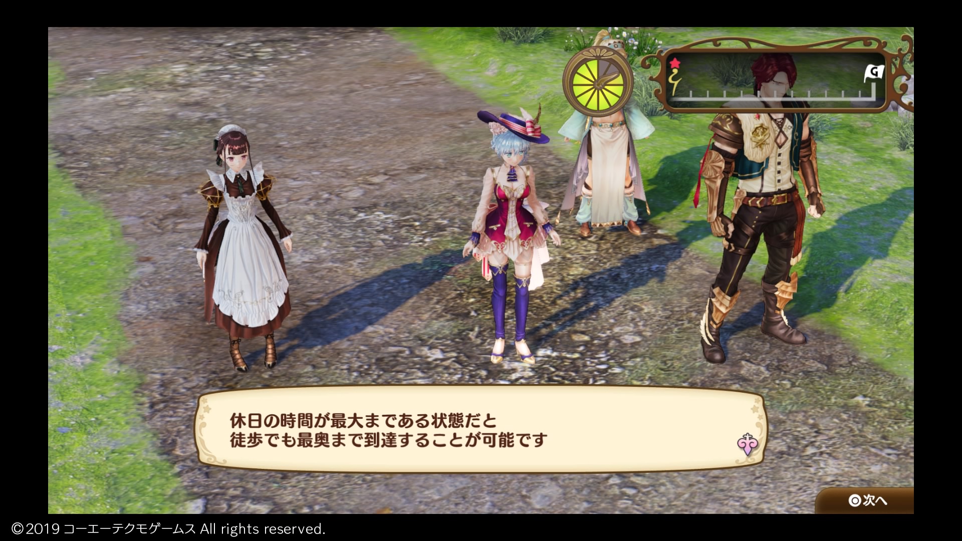 休日には街の外に散策に出かけられるということで、ようやくフリーワークみたいなプレイヤーが主人公を動かせる時が来たと思ったのに、散策はオートで進行、終了してしまった!